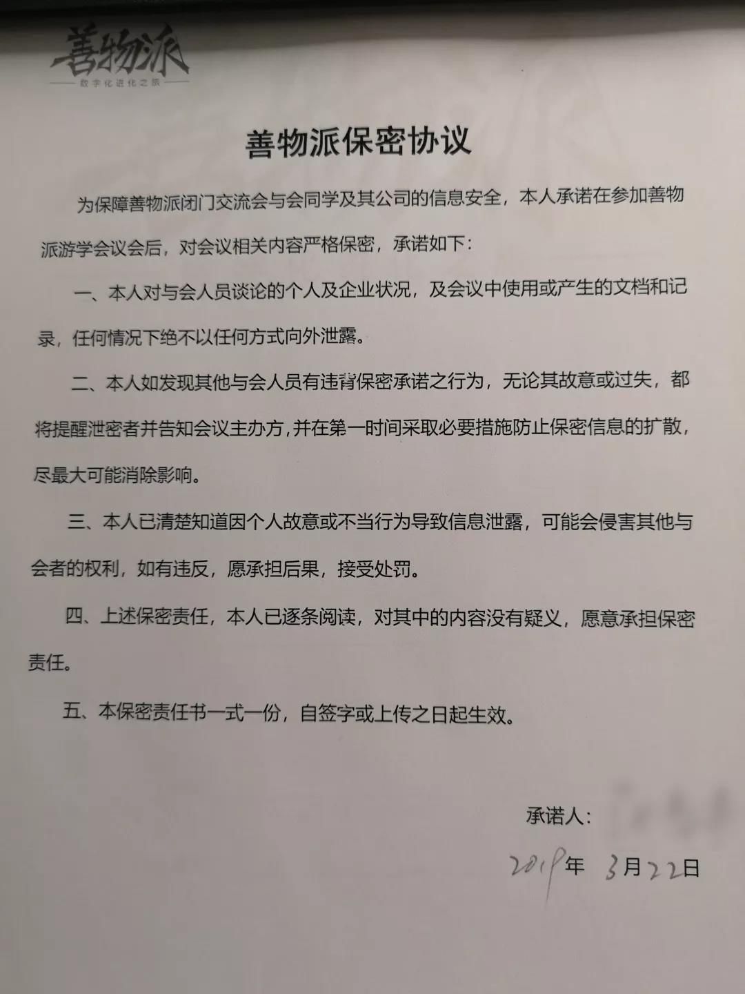 保密协议精确到在场每一个人的签署,以及同学群内上传,以表保密决心,它承载了对嘉宾分享内容的保密以及对与会同学研讨分享出来的内容保密,所以,下文你所能看到的内容均和闭门现场内容无关,但是以下内容可能是由于碎片化信息量过大而被你忽视的你恰好需要的干货。